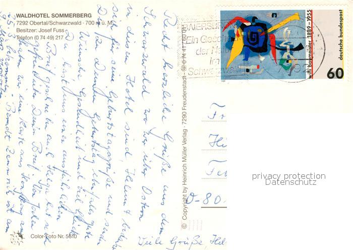 73103513 alte Postkarte Obertal Buehlertal Waldhotel Sommerberg postalisch gelaufen Erhaltung siehe scans [KathaD81] KatCode: 11110008216008