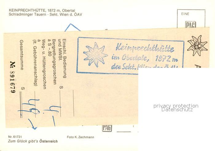 73093760 Obertal Steiermark Keinprechthuette Schladminger Tauern postalisch nicht gelaufen Erhaltung siehe scans [KathaD81] KatCode: 11390