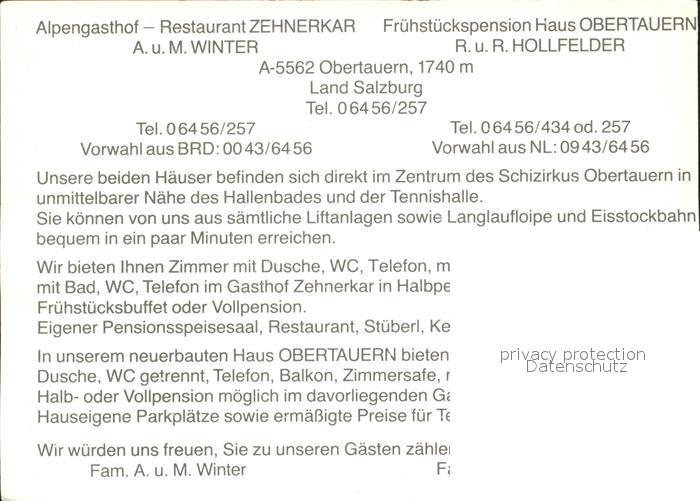 72270792 Obertauern Alpengasthof Restaurant Zehnerkar Wintersportplatz Alpen postalisch nicht gelaufen Werbekarte (keine Postkarte) Erhaltung siehe scans KatCode: 11390322050422
