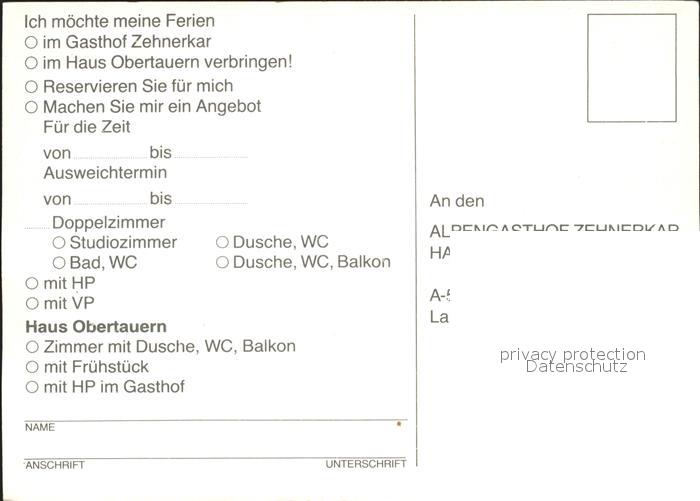 72270793 Obertauern Alpengasthof Restaurant Zehnerkar Wintersportplatz Alpen postalisch nicht gelaufen Werbekarte (keine Postkarte) Erhaltung siehe scans KatCode: 11390322050422