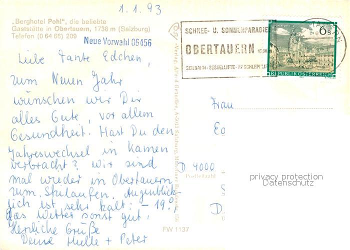 12943295 alte Postkarte Obertauern Berghotel Pohl postalisch gelaufen Erhaltung siehe scans [NatalD47] KatCode: 11390322050422