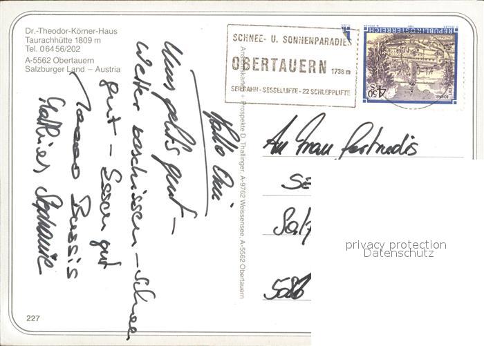 42923885 alte Postkarte Obertauern Dr Th Koernerhaus bei Nacht postalisch gelaufen Erhaltung siehe scans [WerneD48] KatCode: 11390322050422