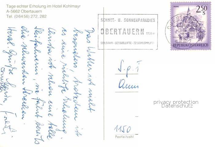 12871515 alte Postkarte Obertauern Hotel Kohlmayr postalisch gelaufen Erhaltung siehe scans [PaolaD17] KatCode: 11390322050422