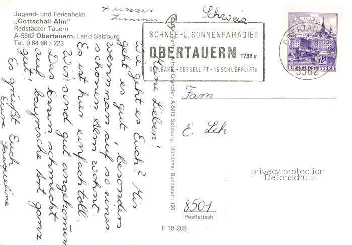 72779637 alte Postkarte Obertauern Jugendheim Ferienheim Gottschall Alm postalisch gelaufen Erhaltung siehe scans [FriedD77] KatCode: 11390322050422