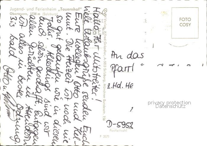 12396013 alte Postkarte Obertauern Jugendheim Tauernhof postalisch gelaufen Erhaltung siehe scans KatCode: 11390322050422