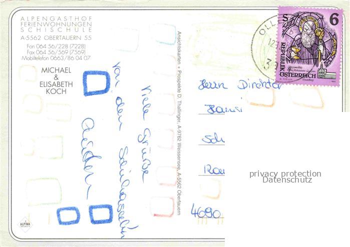 74109585 alte Postkarte Obertauern Pinzgau-Pongau AT Alpengasthof Ferienwohnungen Schule Koch postalisch gelaufen Erhaltung siehe scans [IrynaD87] KatCode: 11390322050422