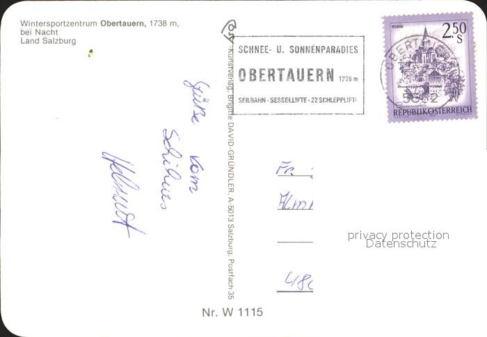 72099069 alte Postkarte Obertauern Skiparadies bei Nacht postalisch gelaufen Erhaltung siehe scans KatCode: 11390322050422