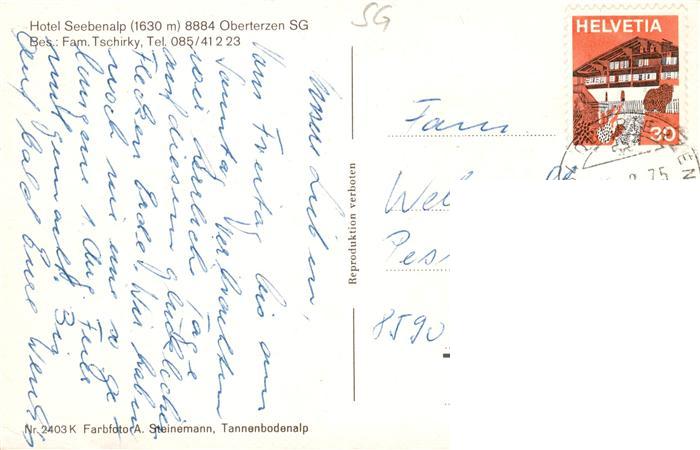 13931707 alte Postkarte Oberterzen SG Hotel Seebenalp Alpen postalisch gelaufen Erhaltung siehe scans [FriedD77] KatCode: 11470190565664
