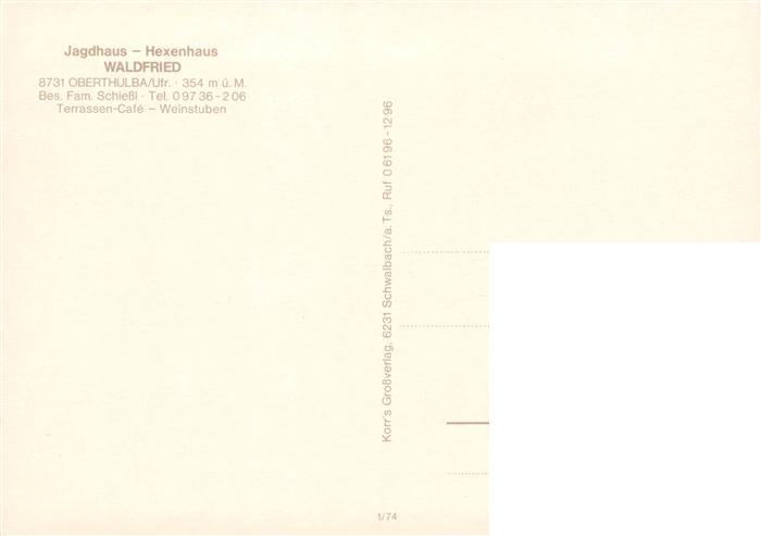 73885440 Oberthulba Jagdhaus Hexenhaus Waldfried postalisch nicht gelaufen Erhaltung siehe scans [FriedD77] KatCode: 11110009672139