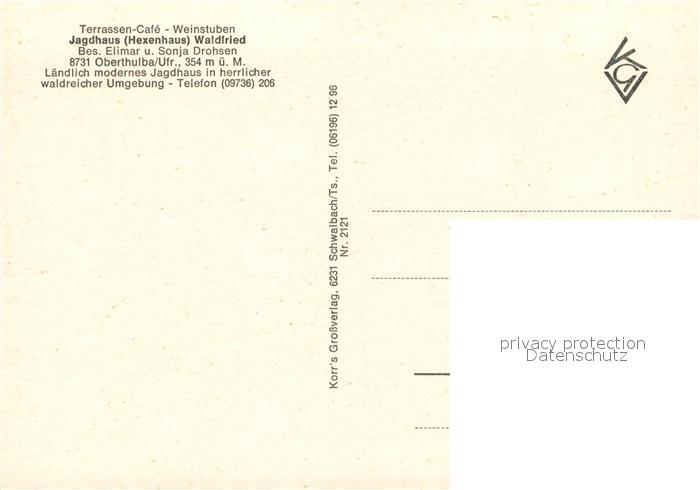 73646460 Oberthulba Terrassen-Cafe Weinrestaurant Jagdhaus Hexenhaus Waldfried postalisch nicht gelaufen Erhaltung siehe scans [FriedD77] KatCode: 11110009672139
