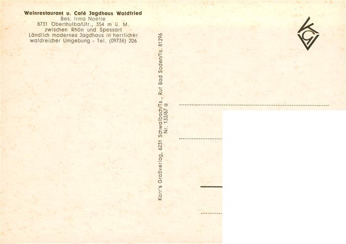 73901338 Oberthulba Weinrestaurant Cafe Jagdhaus Waldfried Gaststube postalisch nicht gelaufen Erhaltung siehe scans [WerneD78] KatCode: 11110009672139