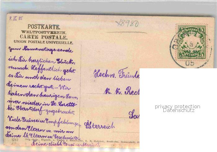 42692535 alte Postkarte Obertiefenbach Bayern Maedelergabelgruppe postalisch gelaufen Erhaltung siehe scans [AndreD76] KatCode: 11110009780133