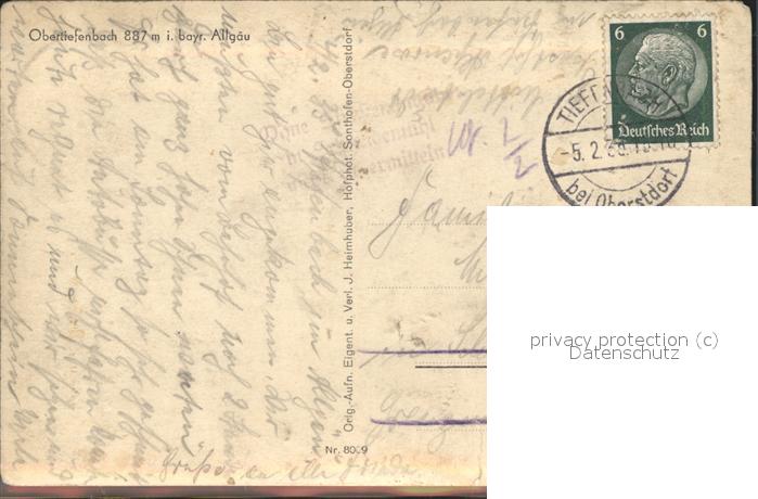 71525744 alte Postkarte Obertiefenbach Bayern Panorama postalisch gelaufen Erhaltung siehe scans KatCode: 11110009780133