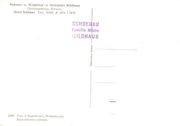 13873756 Obertoggenburg Hotel Schoenau postalisch nicht gelaufen Erhaltung siehe scans [FriedD77] KatCode: 11470190585844