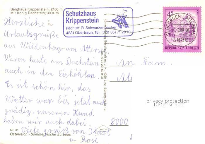 72668054 alte Postkarte Obertraun Berghaus Krippenstein mit Dachstein postalisch gelaufen Erhaltung siehe scans [WerneD78] KatCode: 11390315040712
