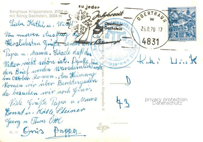 73185225 alte Postkarte Obertraun Berghaus Krippenstein mit Koenig Dachstein postalisch gelaufen Erhaltung siehe scans [LiesaD40] KatCode: 11390315040712