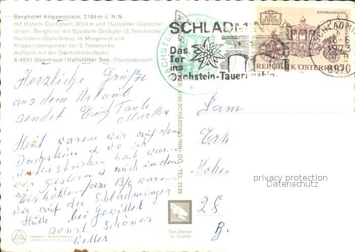 71907820 alte Postkarte Obertraun Berghotel Krippenstein Hoher Dachstein Seilbahn postalisch gelaufen Erhaltung siehe scans KatCode: 11390315040712