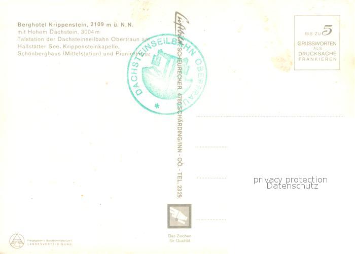 73655918 Obertraun Berghotel Krippenstein mit Hohem Dachstein Talstation der Dachsteinseilbahn Hallstaetter See Krippensteinkapelle Schoenberghaus postalisch nicht gelaufen Erhaltung siehe scans [WerneD78] KatCode: 11390315040712