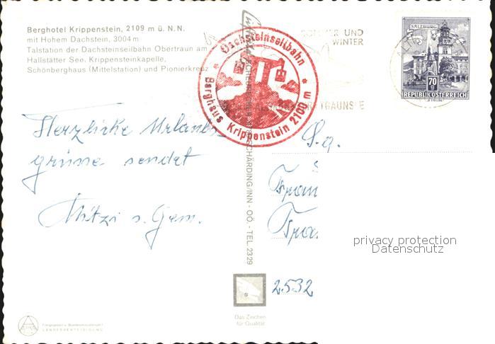 72468219 alte Postkarte Obertraun Berghotel Krippenstein Seilbahn Hoher Dachstein Kapelle Schoenberghaus Pionierkreuz postalisch gelaufen Erhaltung siehe scans KatCode: 11390315040712