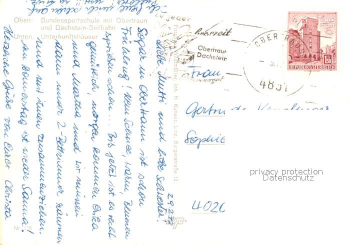 73231329 alte Postkarte Obertraun Bundessportschule Dachstein-Seilbahn postalisch gelaufen Erhaltung siehe scans [LiesaD40] KatCode: 11390315040712