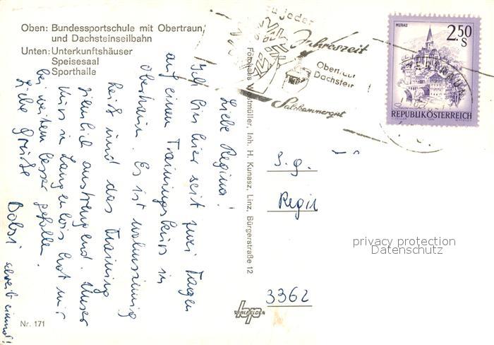 73102391 alte Postkarte Obertraun Bundessportschule Dachsteinseilbahn Unterkunftshaeuser postalisch gelaufen Erhaltung siehe scans [PaolaD17] KatCode: 11390315040712