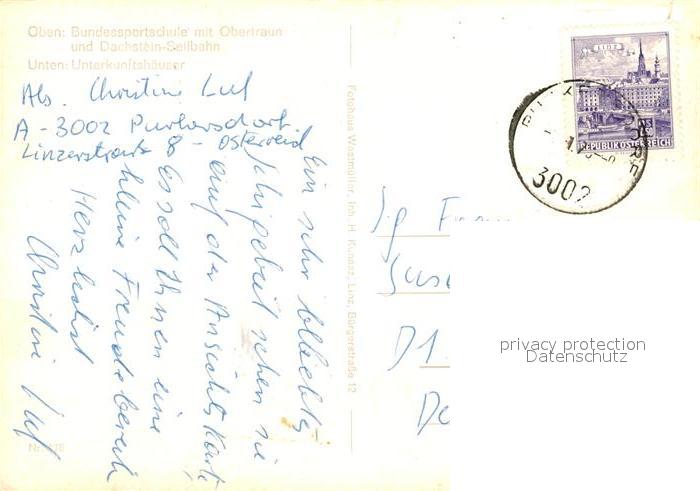 73205153 alte Postkarte Obertraun Bundessportschule Luftseilbahn postalisch gelaufen Erhaltung siehe scans [NatalD47] KatCode: 11390315040712