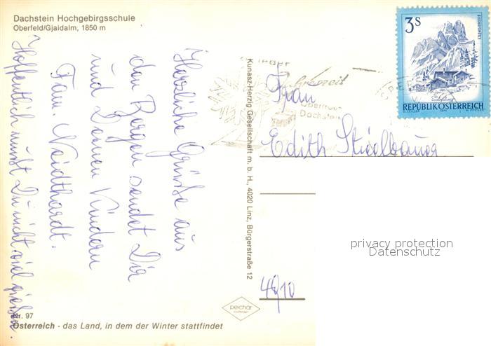 73286586 alte Postkarte Obertraun Dachstein Hochgebirgsschule Oberfeld Gjaidalm postalisch gelaufen Erhaltung siehe scans [NatalD47] KatCode: 11390315040712