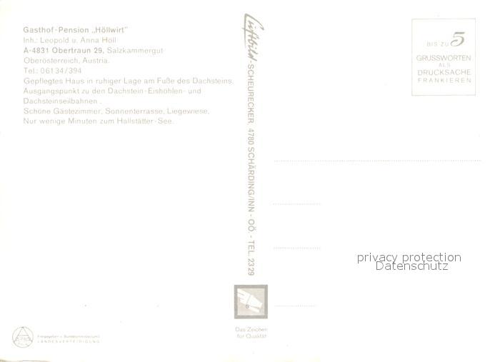 12957292 Obertraun Gasthof Hoellwirt postalisch nicht gelaufen Erhaltung siehe scans [NatalD47] KatCode: 11390315040712