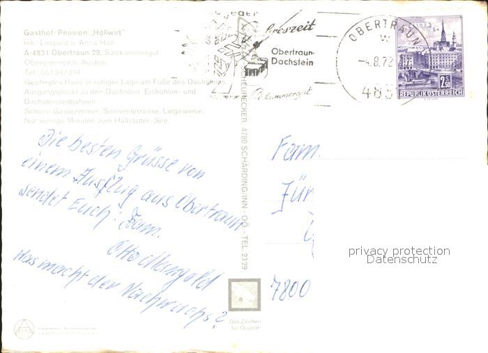 72000650 alte Postkarte Obertraun Gasthof Pension Hoellwirt postalisch gelaufen Erhaltung siehe scans KatCode: 11390315040712