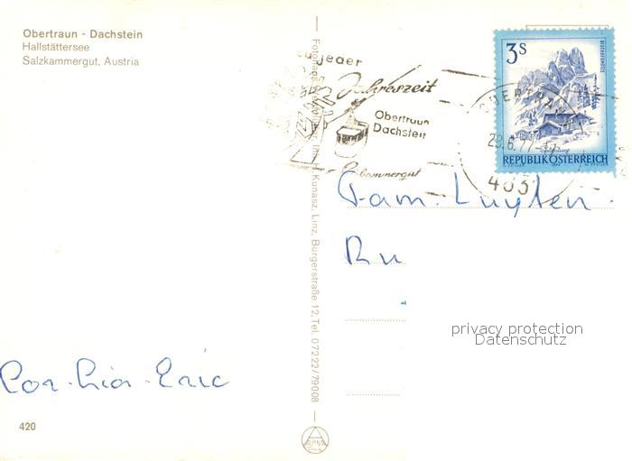 73326009 alte Postkarte Obertraun Hallstaettersee Dachsteingebirge Fliegeraufnahme postalisch gelaufen Erhaltung siehe scans [FriedD77] KatCode: 11390315040712