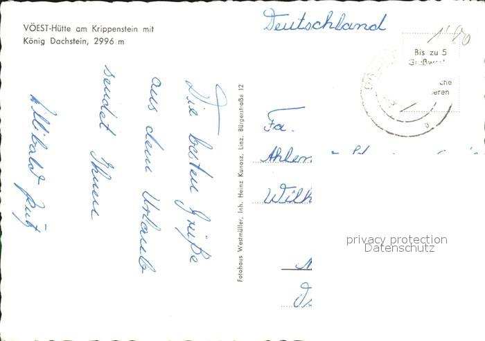 72494096 alte Postkarte Obertraun Voeest-Huette Krippenstein Koenig Dachstein postalisch gelaufen Erhaltung siehe scans KatCode: 11390315040712