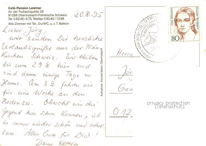 73646457 alte Postkarte Obertrubach Cafe Pension Leistner postalisch gelaufen Erhaltung siehe scans [FriedD77] KatCode: 11110009474156