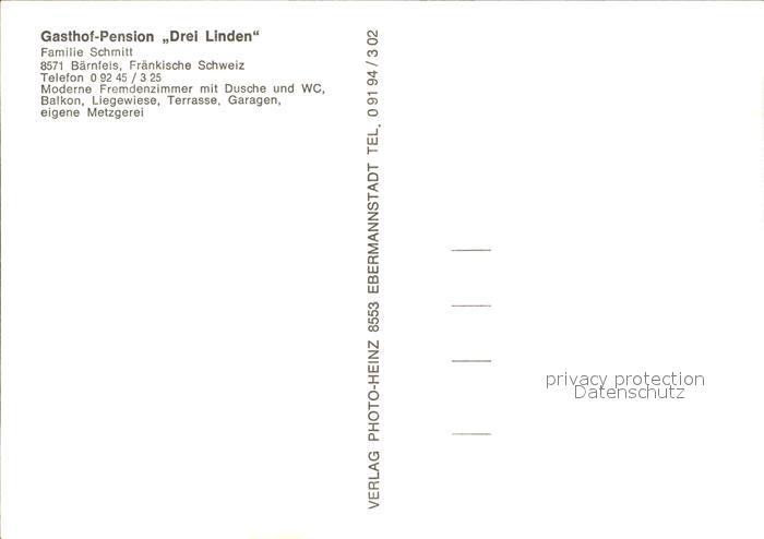 72142918 Obertrubach Gasthaus Pension Drei Linden postalisch nicht gelaufen Erhaltung siehe scans KatCode: 11110009474156
