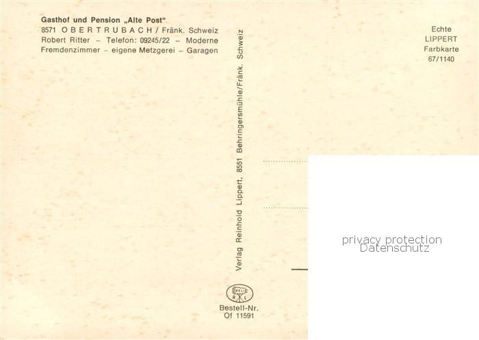 73758040 Obertrubach GAsthof-Pension Alte Post Aussenansicht postalisch nicht gelaufen Erhaltung siehe scans [LiesaD40] KatCode: 11110009474156
