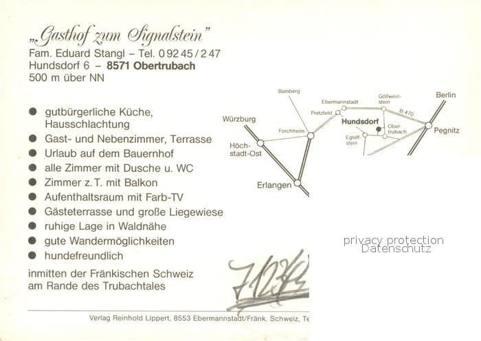 73653623 Obertrubach Gasthof Pension zum Signalstein Gastraum Terrasse Fremdenzimmer postalisch nicht gelaufen Werbekarte (keine Postkarte) Erhaltung siehe scans [FriedD77] KatCode: 11110009474156
