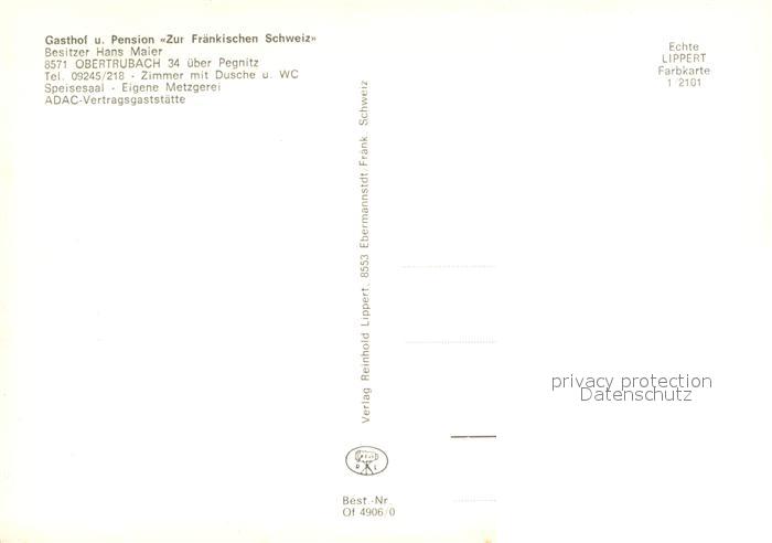 73615772 Obertrubach Gasthof Pension Zur Fraenkischen Schweiz Gastraeume Gaestezimmer postalisch nicht gelaufen Erhaltung siehe scans [WerneD78] KatCode: 11110009474156