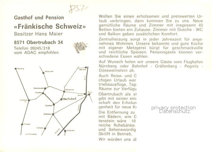 73758524 Obertrubach Gasthof Pension Zur Fraenkischen Schweiz Gastraeume Zimmer postalisch nicht gelaufen Werbekarte (keine Postkarte) Erhaltung siehe scans [FriedD77] KatCode: 11110009474156