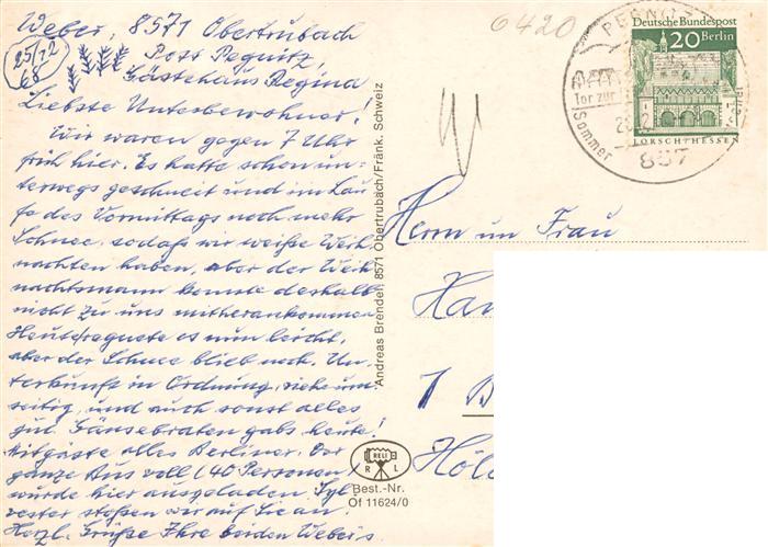 73923768 alte Postkarte Obertrubach Panorama Richard Wagner Felsen Gasthof Alte Post Pension Regina Gaststaette Andreas Brendel postalisch gelaufen Erhaltung siehe scans [WerneD78] KatCode: 11110009474156