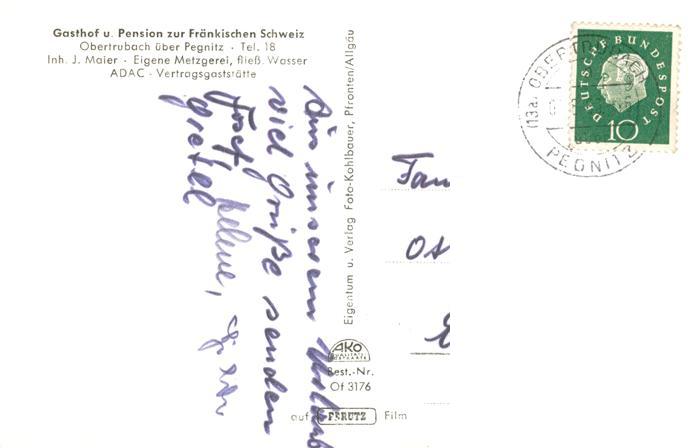 73911535 alte Postkarte Obertrubach Richard Wagnerfelsen Blick vom Hoehlenstein Total Gasthof zur fraenkischen Schweiz Kirche und Marienheim postalisch gelaufen Erhaltung siehe scans [WerneD78] KatCode: 11110009474156