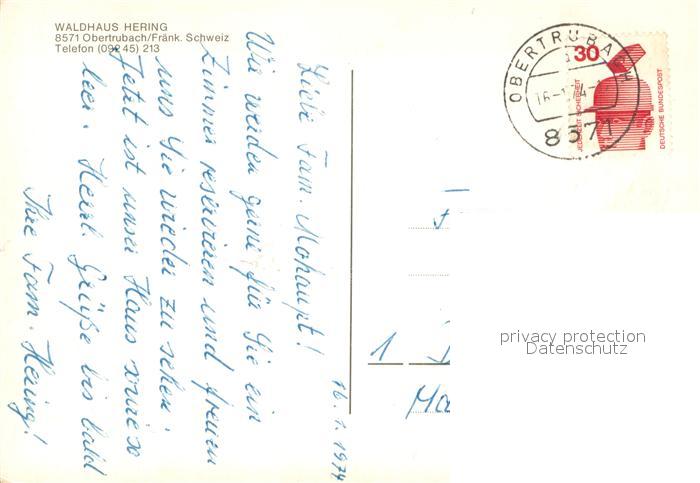 73748452 alte Postkarte Obertrubach Waldhaus Hering Details postalisch gelaufen Erhaltung siehe scans [WerneD78] KatCode: 11110009474156