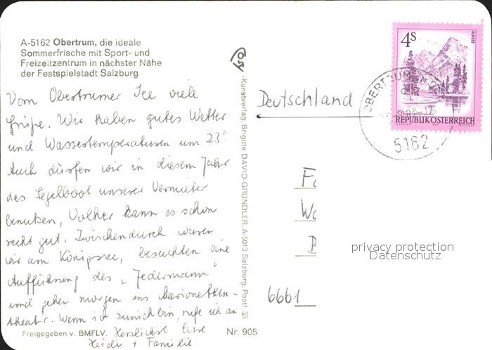 71872054 alte Postkarte Obertrum See Fliegeraufnahme postalisch gelaufen Erhaltung siehe scans KatCode: 11390323050327