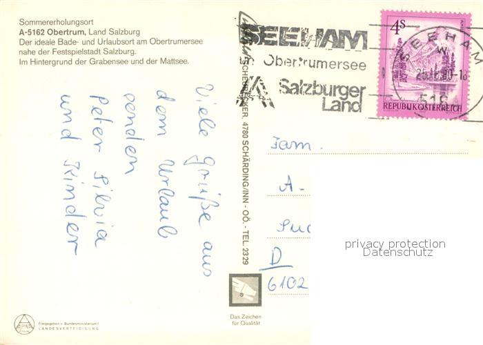 73626084 alte Postkarte Obertrum See Fliegeraufnahme mit Grabensee und Mattensee postalisch gelaufen Erhaltung siehe scans [FriedD77] KatCode: 11390323050327