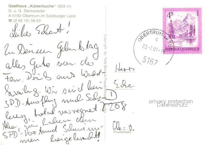 72935121 alte Postkarte Obertrum See Gasthaus Kaiserbuche Kapelle postalisch gelaufen Erhaltung siehe scans [LiesaD40] KatCode: 11390323050327