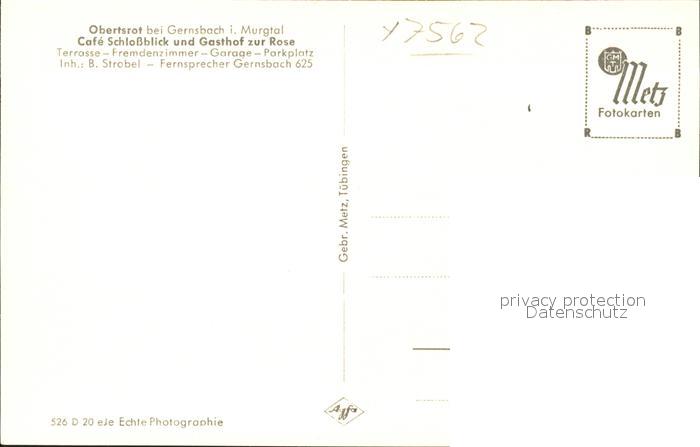 41775165 Obertsrot Cafe Schlossblick Gasthof zur Rose postalisch nicht gelaufen Erhaltung siehe scans KatCode: 11110008216017