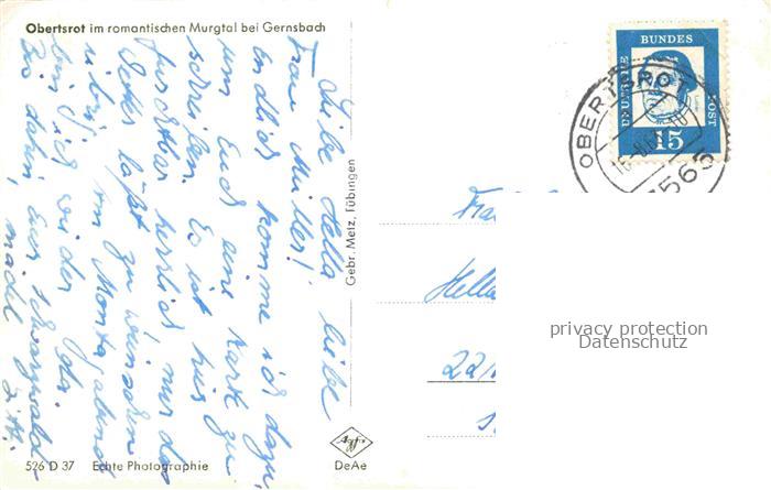 74150811 alte Postkarte Obertsrot Gernsbach Murgtal BW Walddurchblick Baeume Tal Bach Wald postalisch gelaufen Erhaltung siehe scans [Karloger] KatCode: 11110008216017