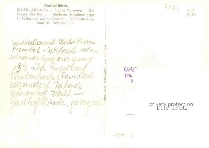73852850 Oberurbach Urbach Gasthof Metzgerei Roessle Gastraeume Festsaal Panorama postalisch nicht gelaufen Erhaltung siehe scans [WerneD78] KatCode: 11110008119076