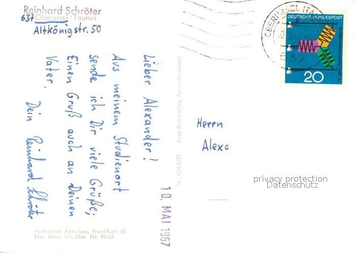 73098403 alte Postkarte Oberursel Taunus Fliegeraufnahme postalisch gelaufen Erhaltung siehe scans [KathaD81] KatCode: 11110006434008