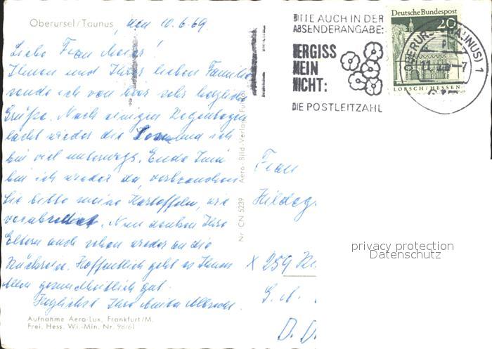 72010876 alte Postkarte Oberursel Taunus Fliegeraufnahme postalisch gelaufen Erhaltung siehe scans KatCode: 11110006434008