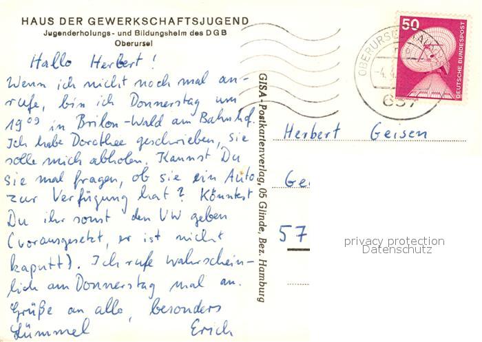 73088421 alte Postkarte Oberursel Taunus Haus der Gewerkschaftsjugend postalisch gelaufen Erhaltung siehe scans [NatalD47] KatCode: 11110006434008