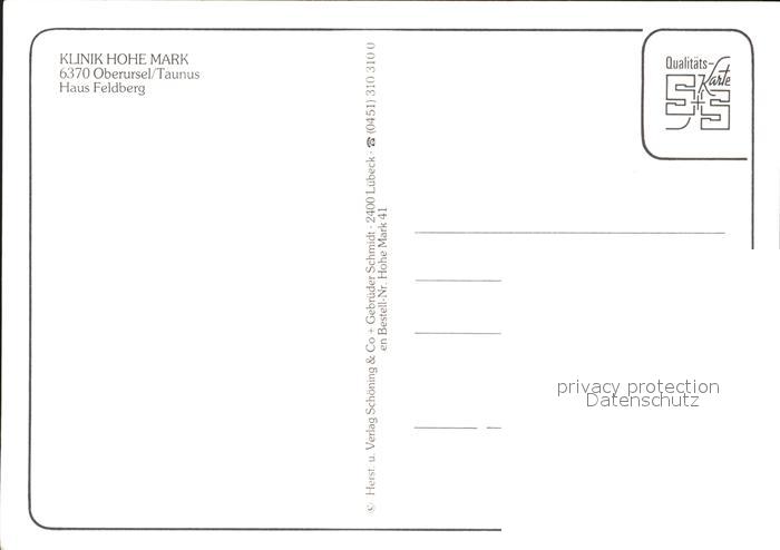 72244816 Oberursel Taunus Klinik Hohe Mark Haus-Feldberg postalisch nicht gelaufen Erhaltung siehe scans KatCode: 11110006434008